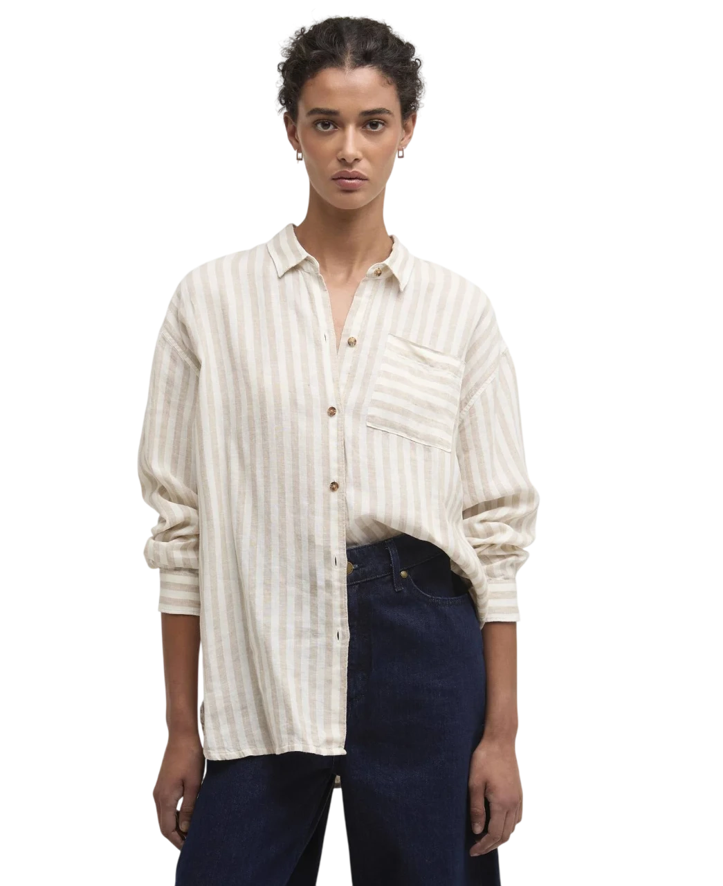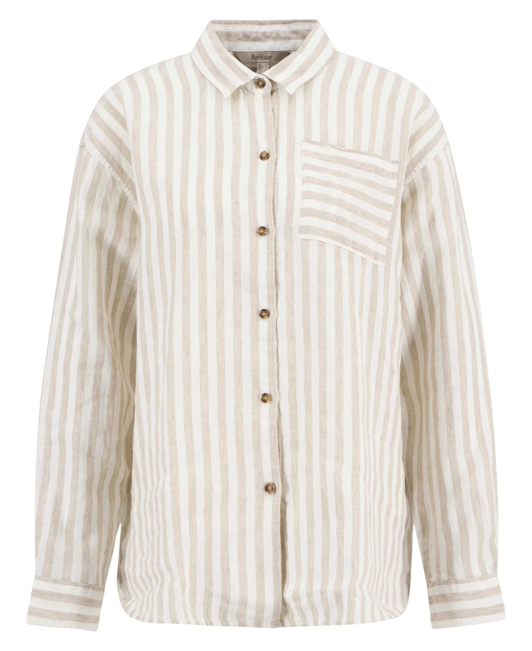 Barbour Annie Shirt Sand Stripe is een luchtige dames blouse van lichtgewicht linnen met comfortabele pasvorm en subtiel zandkleurig streepdesign. Perfect voor casual lente- en zomerlooks.