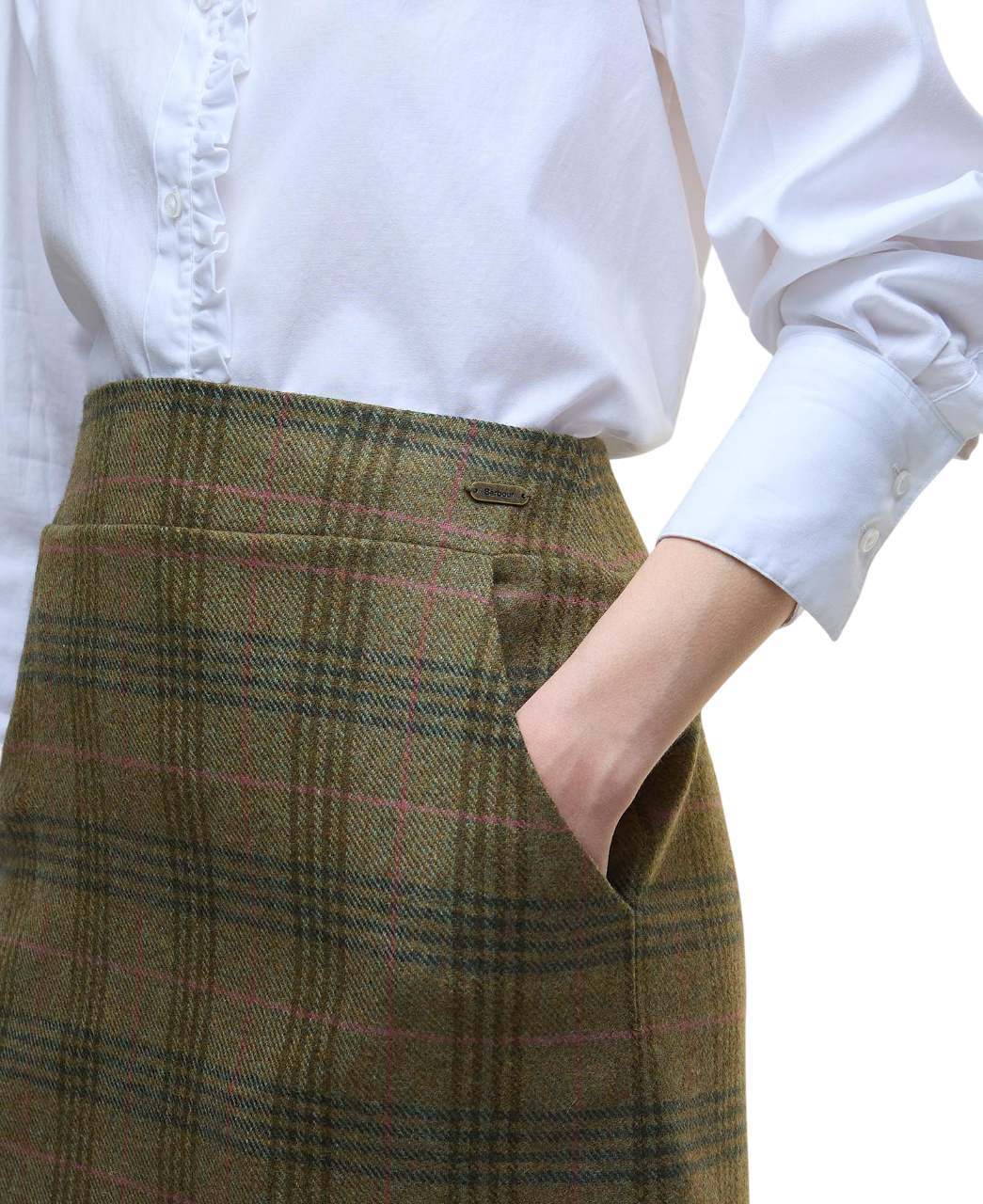Met zijn flatterende brede tailleband, de praktische steekzakken in de zijnaad en de ritssluiting aan de achterkant die zorgt voor een getailleerde pasvorm, belichaamt deze rok alles waar Barbour voor staat: tijdloze elegantie, gecombineerd met praktische bruikbaarheid. Of je nu een drukke werkdag hebt in de stad, een weekend op het platteland plant of gewoon stijlvol voor de dag wilt komen – dit rokje past zich moeiteloos aan jouw levensstijl aan.