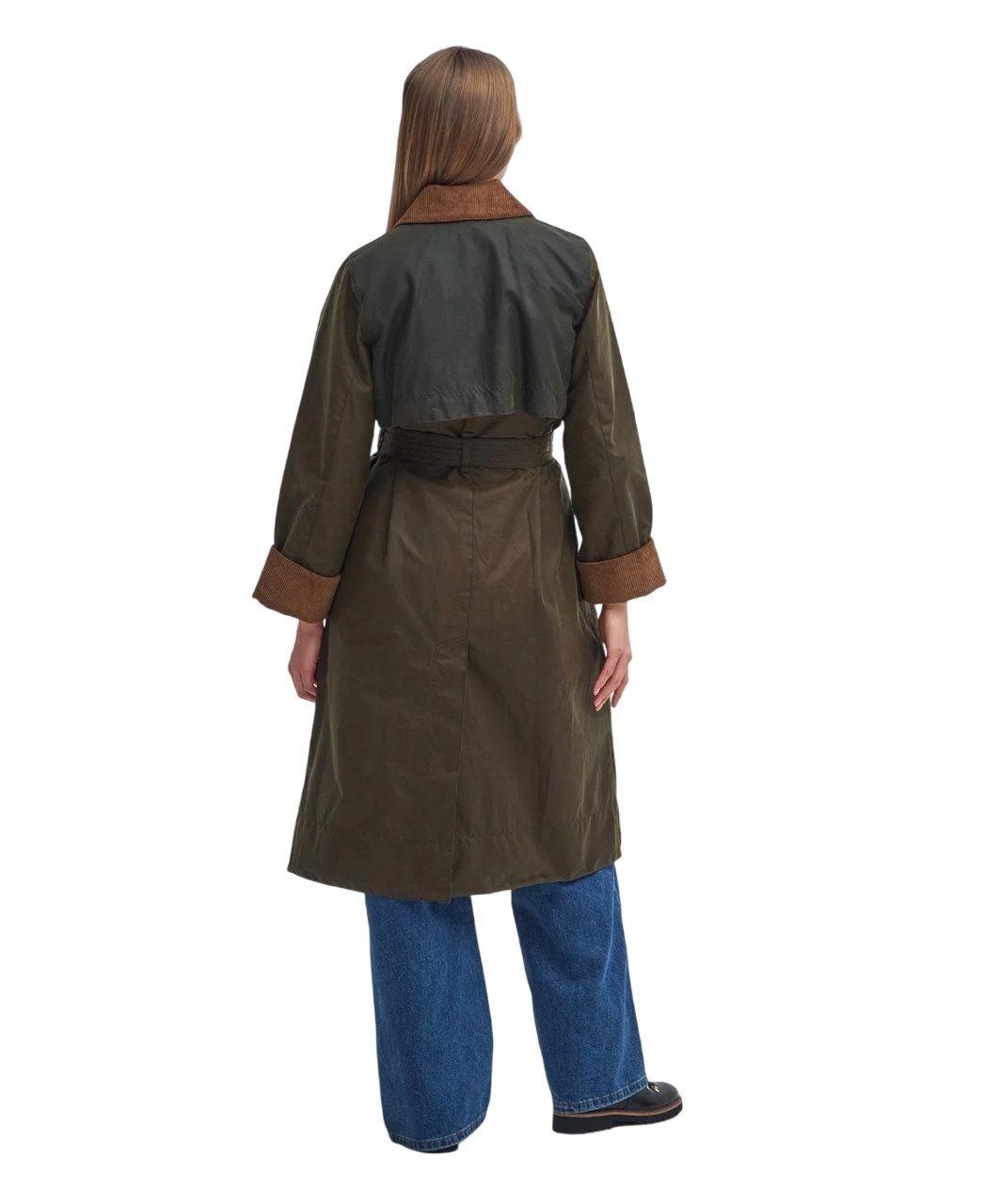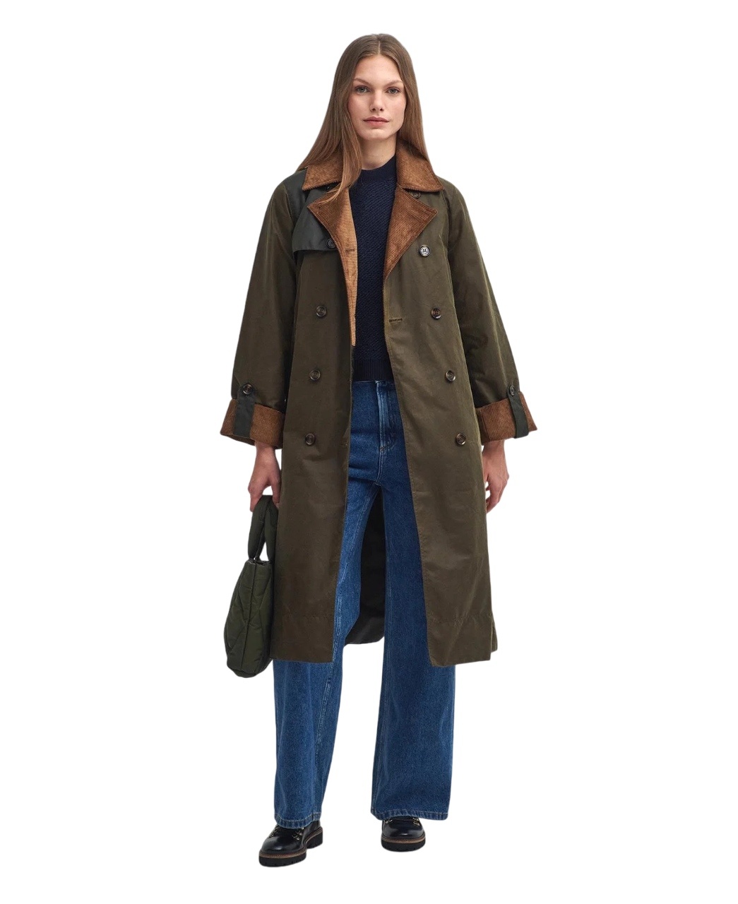 • Trendy en tijdloos ontwerp: De combinatie van een stormflap en ceintuur creëert een flatterende taille, terwijl de corduroy kraag en manchetten een subtiele knipoog naar Barbour's rijke erfgoed geven.