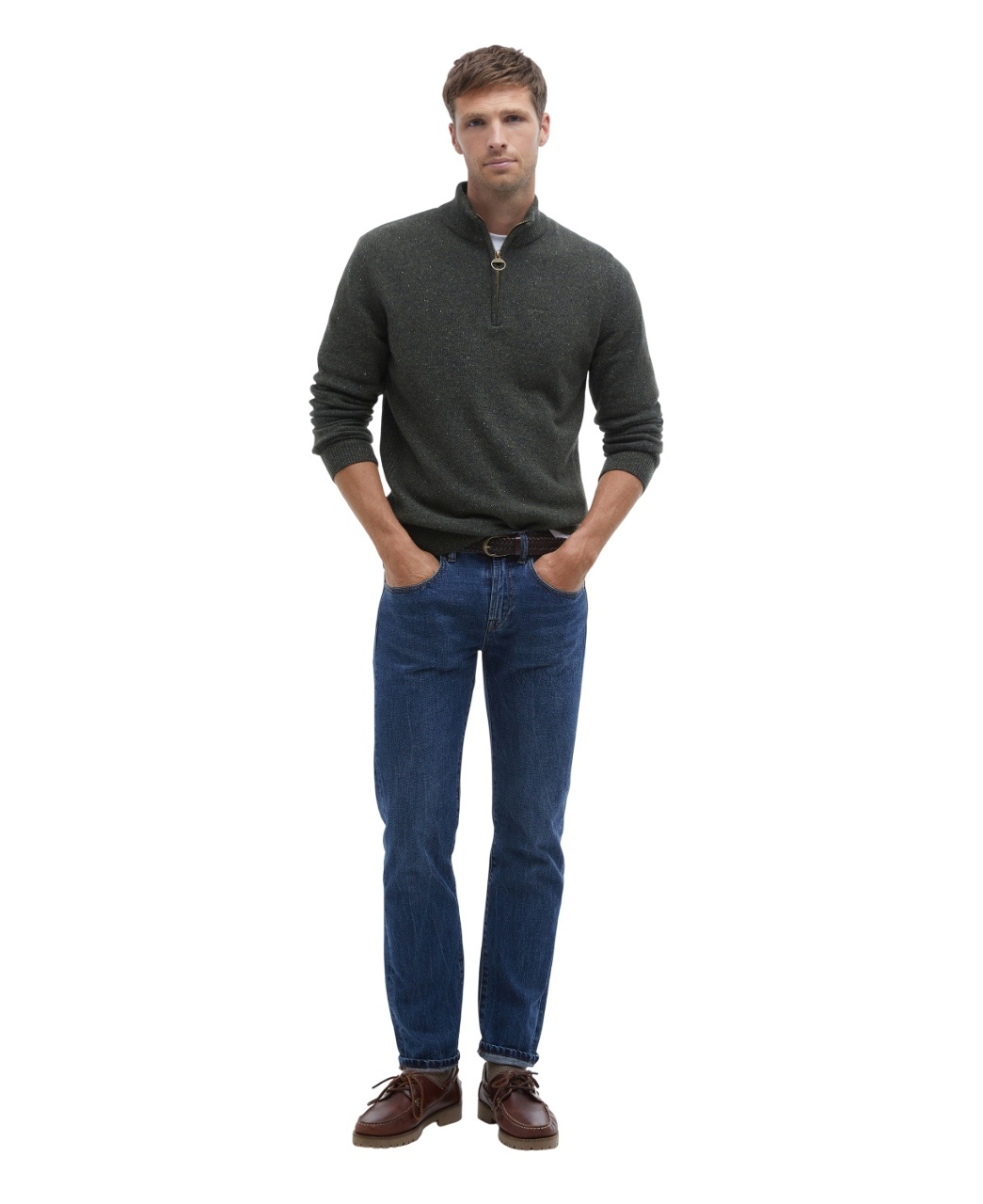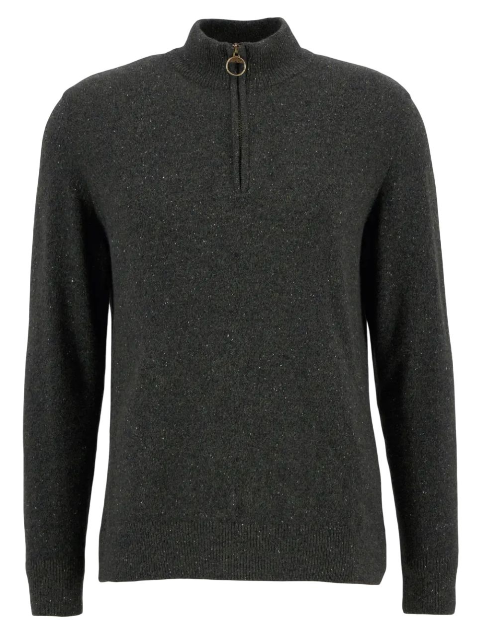 Barbour Essential Tisbury Half-Zip Jumper Dark Seaweed: comfortabele heren trui in wolmix met half-zip en subtiele tweed look. Ideaal voor werk, vrije tijd en reizen. Ontdek jouw nieuwe favoriet vandaag nog!
