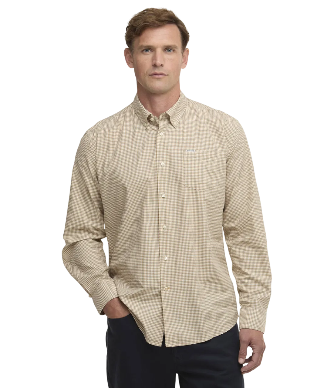 De Barbour Finwell Tailored Long-Sleeved Shirt – Stone is een comfortabel, stijlvol en veelzijdig herenoverhemd. Dankzij 100% katoen, lange mouwen en een tijdloos gingham ruit patroon is dit shirt perfect voor werk en vrije tijd, vooral in de lente en zomer.