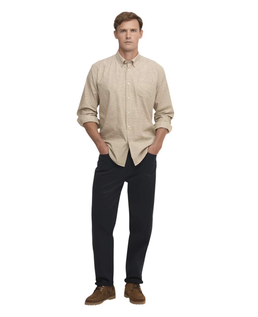 Het subtiele gingham-ruitpatroon en de rustige Stone-kleur zorgen voor een veelzijdige uitstraling die eenvoudig te combineren is met: