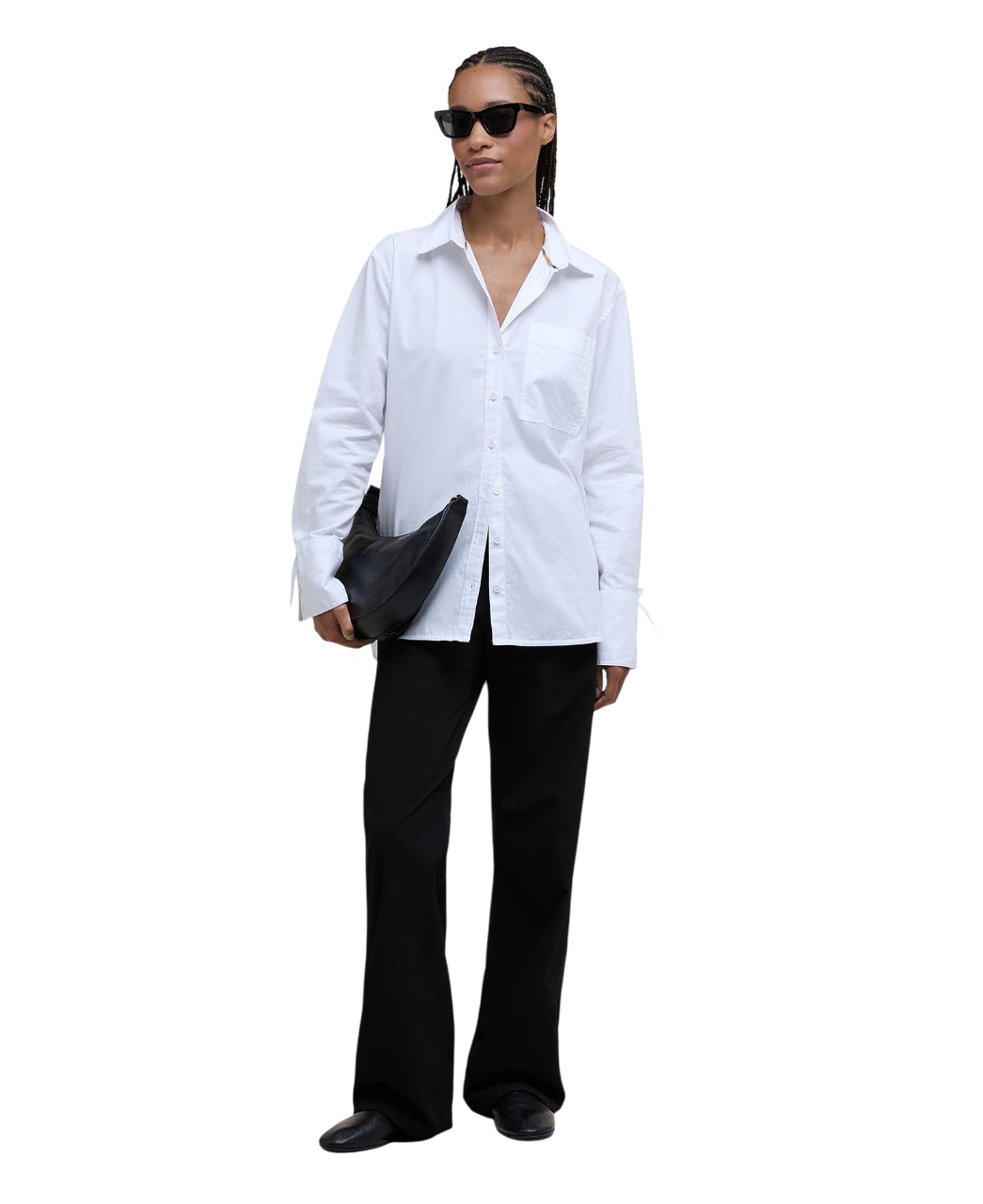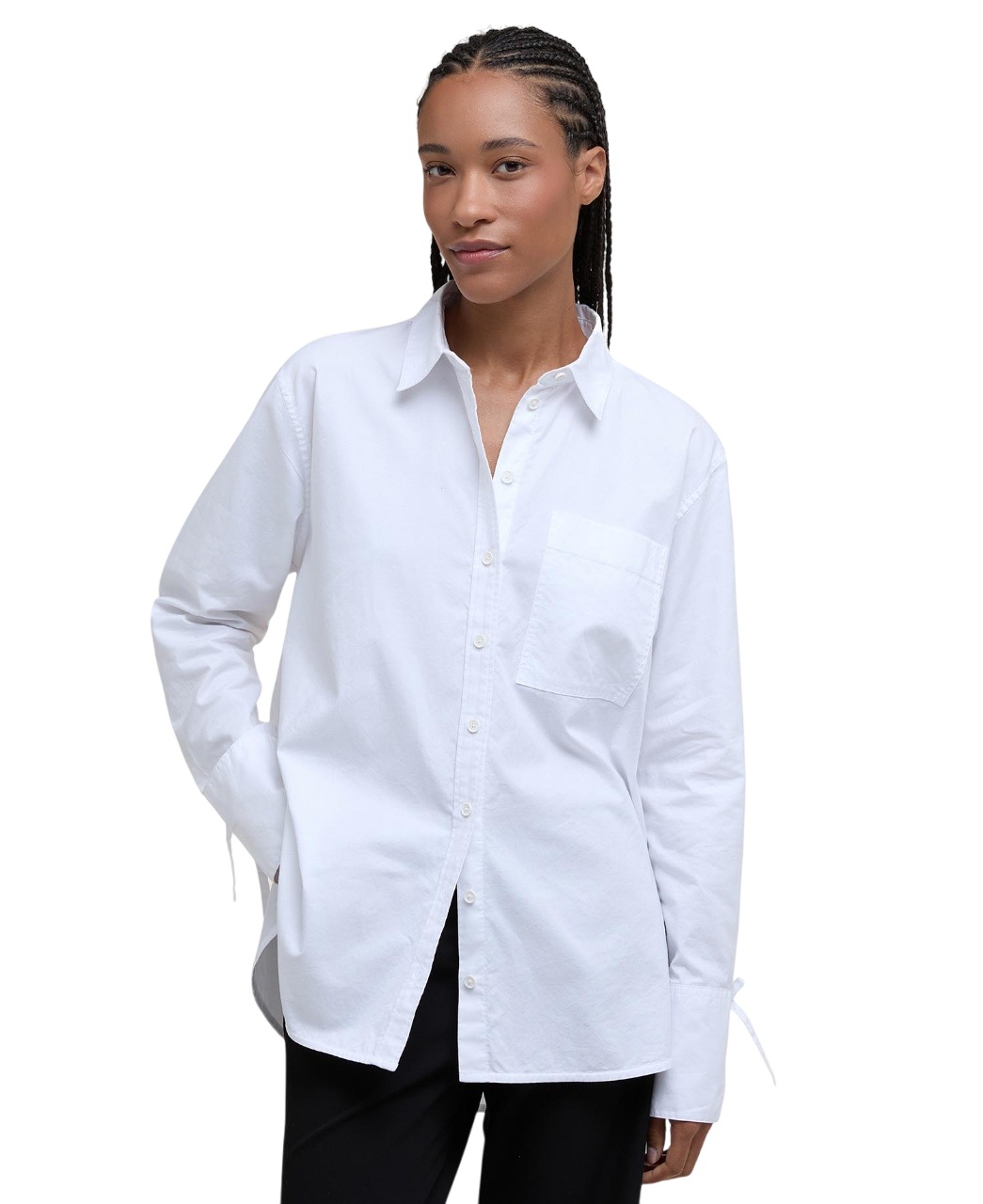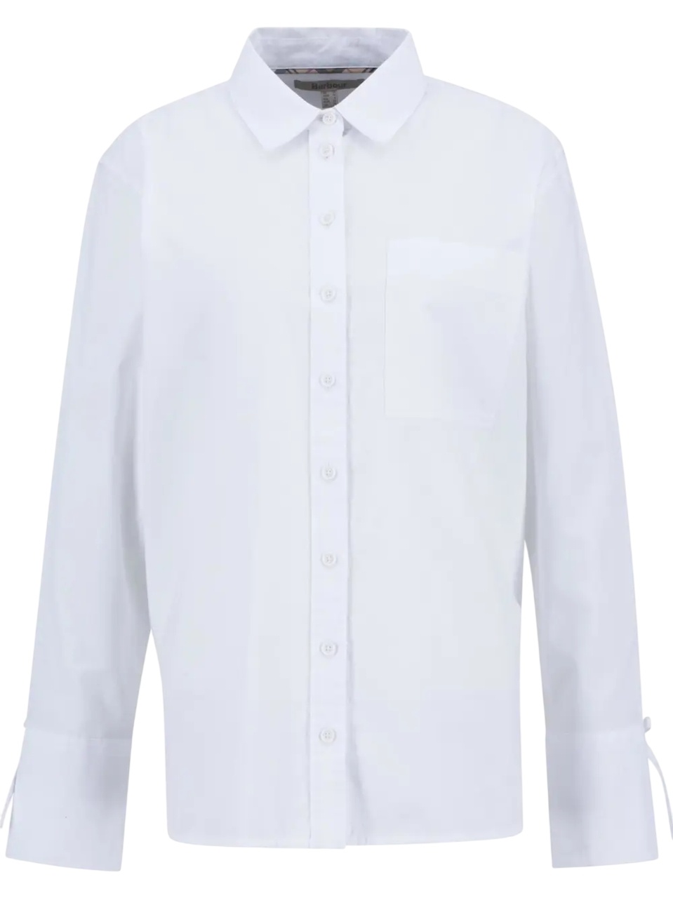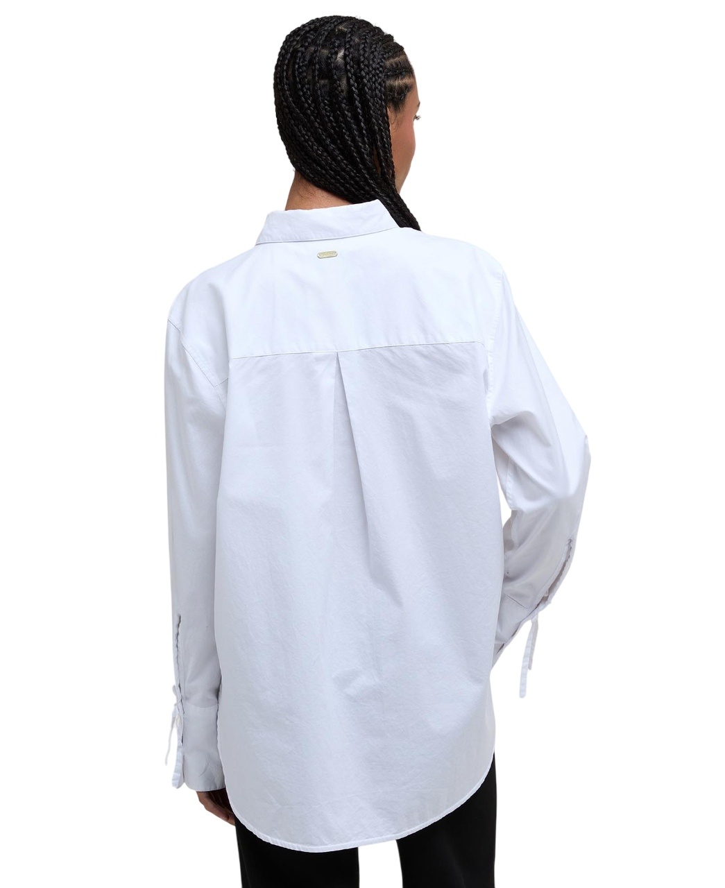 Barbour Freya Relaxed Shirt White: stijlvolle dames blouse van hoogwaardig katoenen popeline met relaxte pasvorm en strikdetails. Ideaal voor werk, stad of diner. Bestel nu jouw tijdloze look!