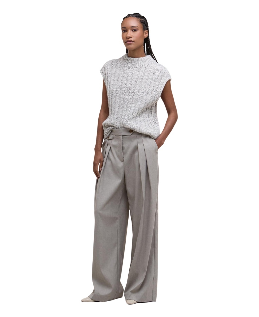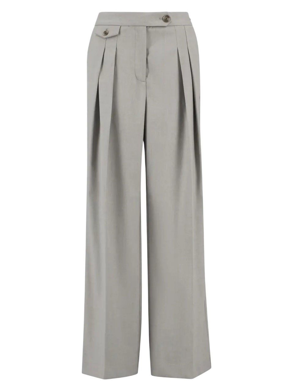 De broek heeft een wide-leg pasvorm: losser bij de benen, maar met een elegante hoge taille voor een vrouwelijk silhouet.