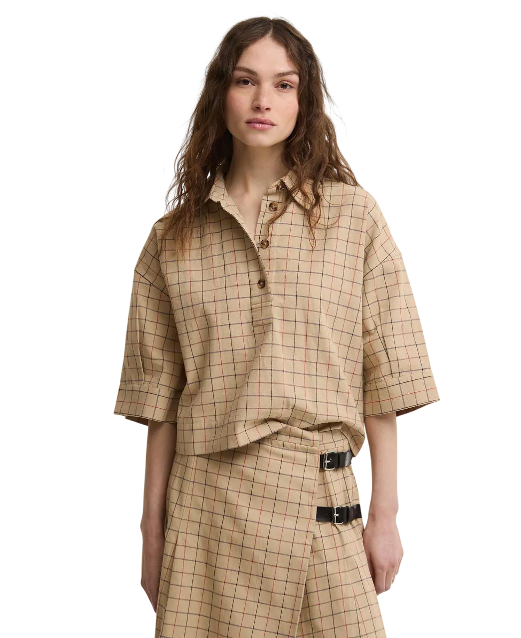 Stylingtip: Deze checkprint werkt uitstekend met beige, wit, olijfgroen, navy en zachte pasteltinten.