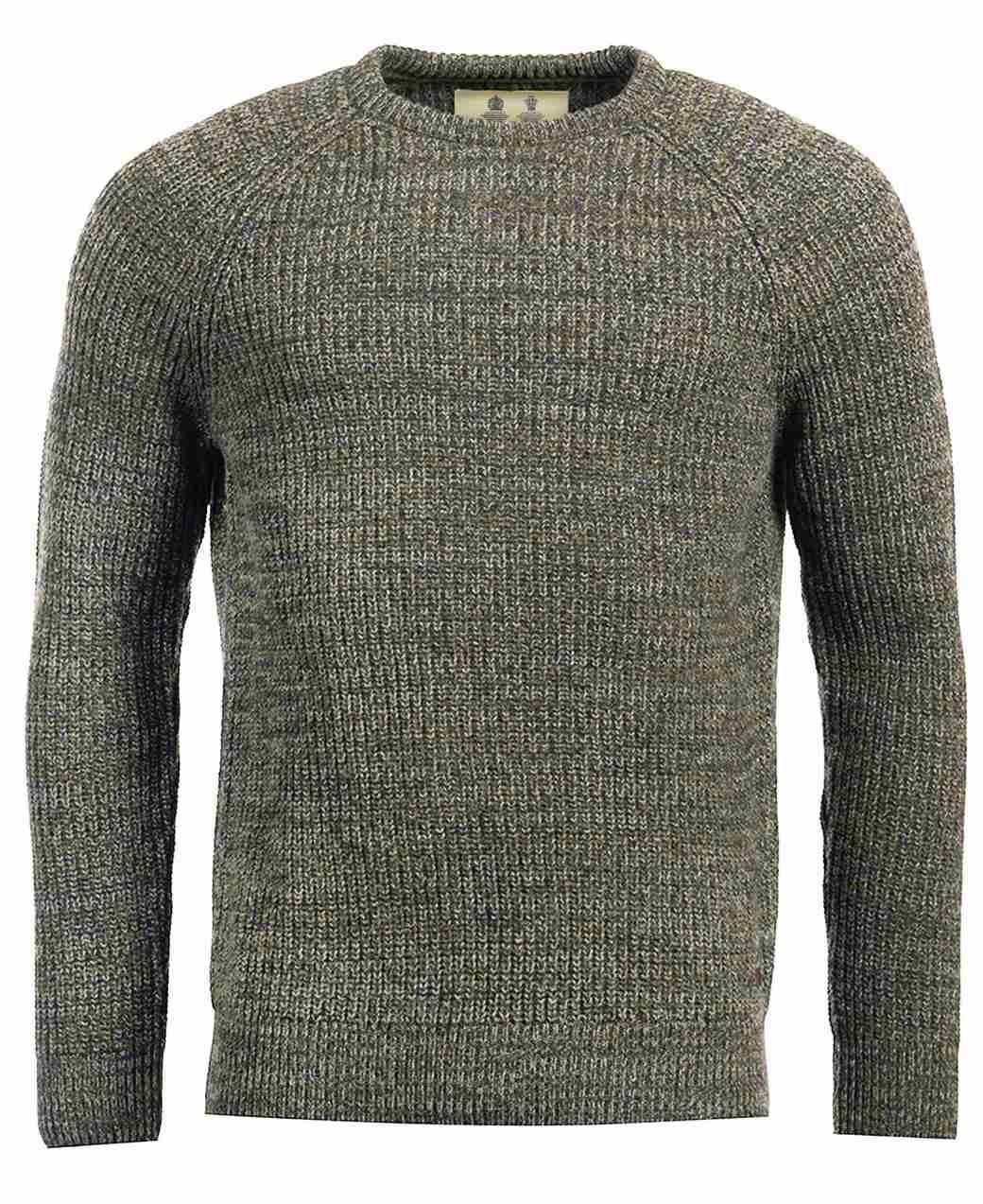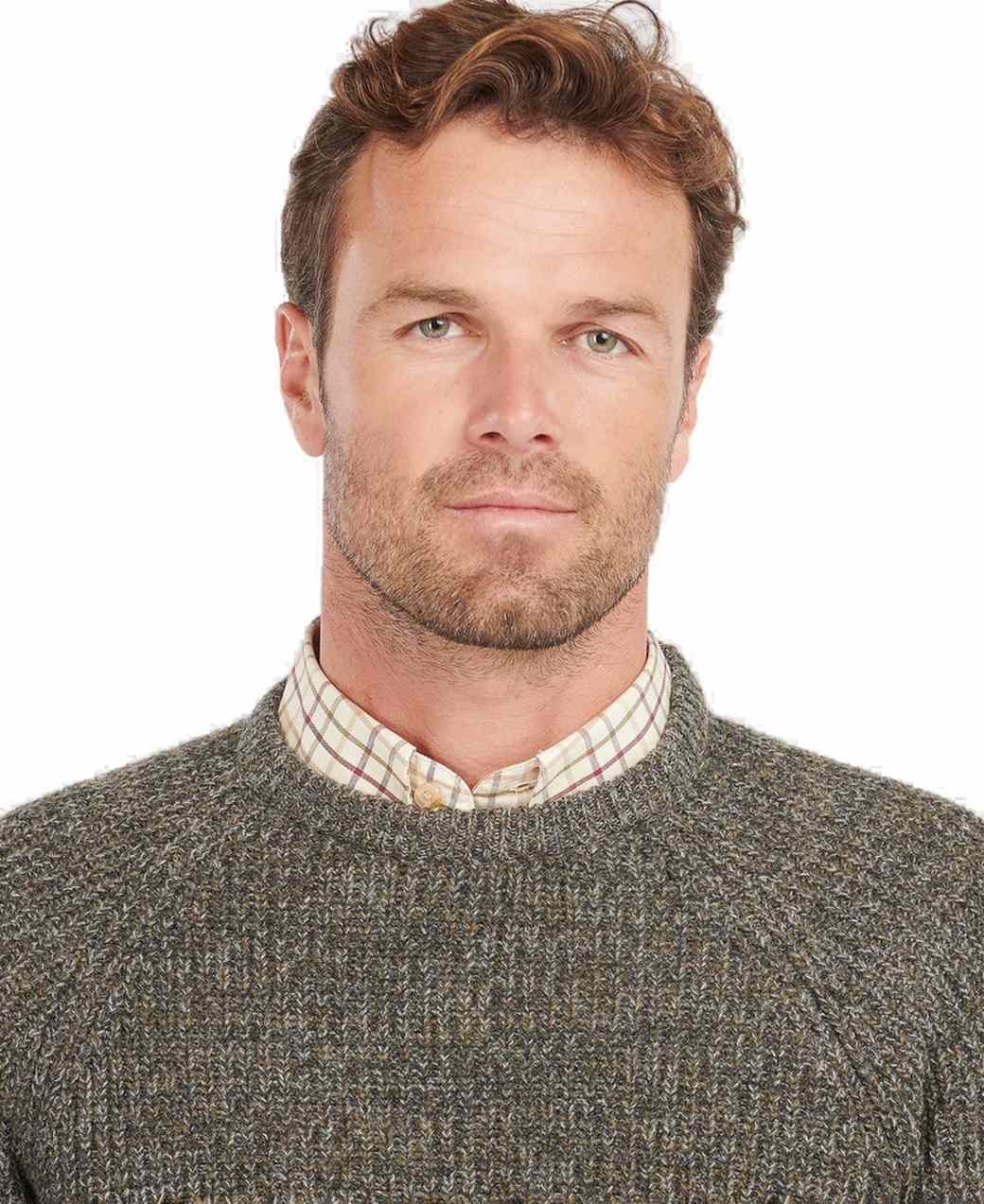 Barbour Horseford Crew robuuste herentrui met ronde hals. Perfect als laagje tijdens de koudere maanden, gemaakt van twee kleurige melange lamswol garen. Met geribbelde manchetten en zoom.