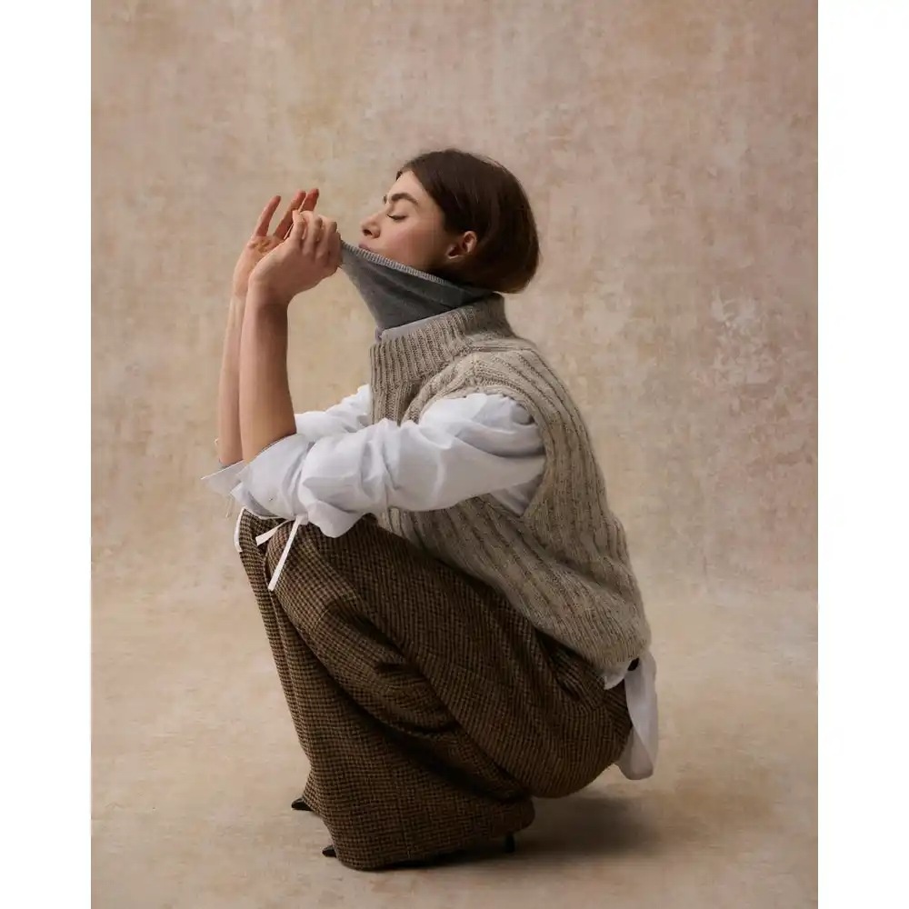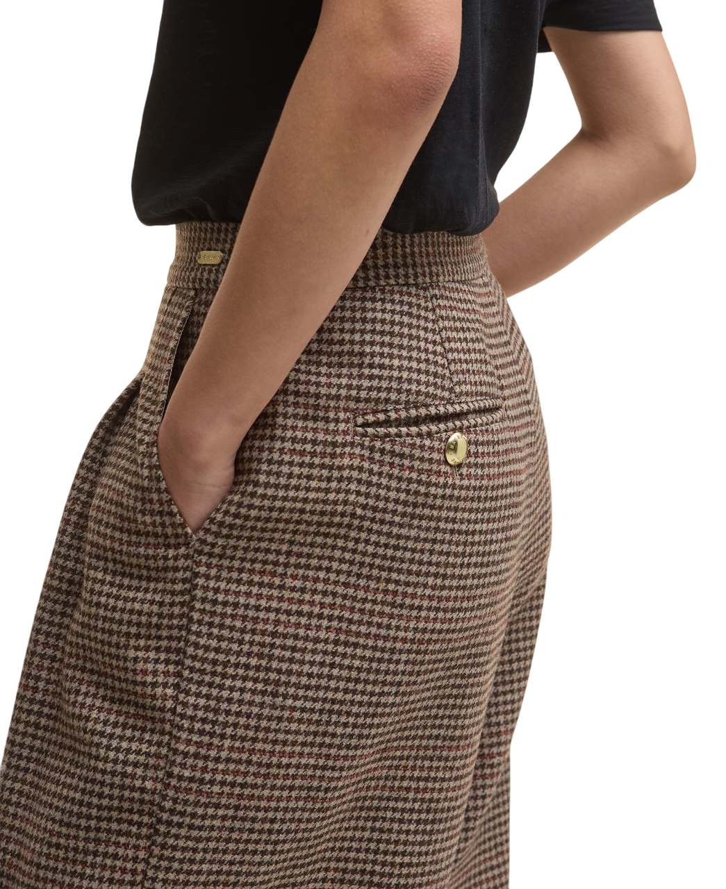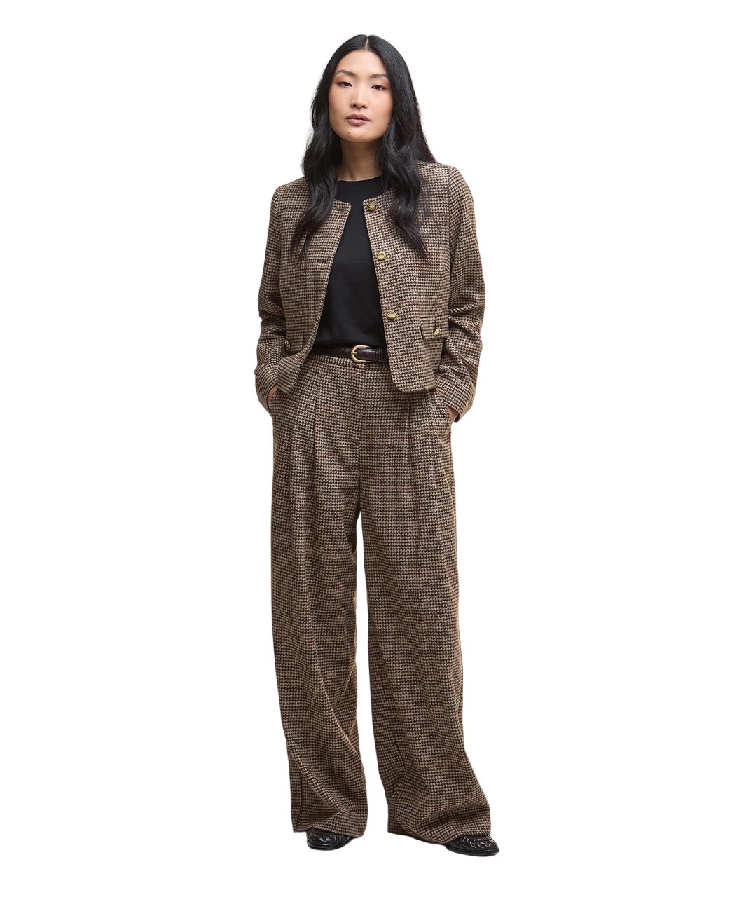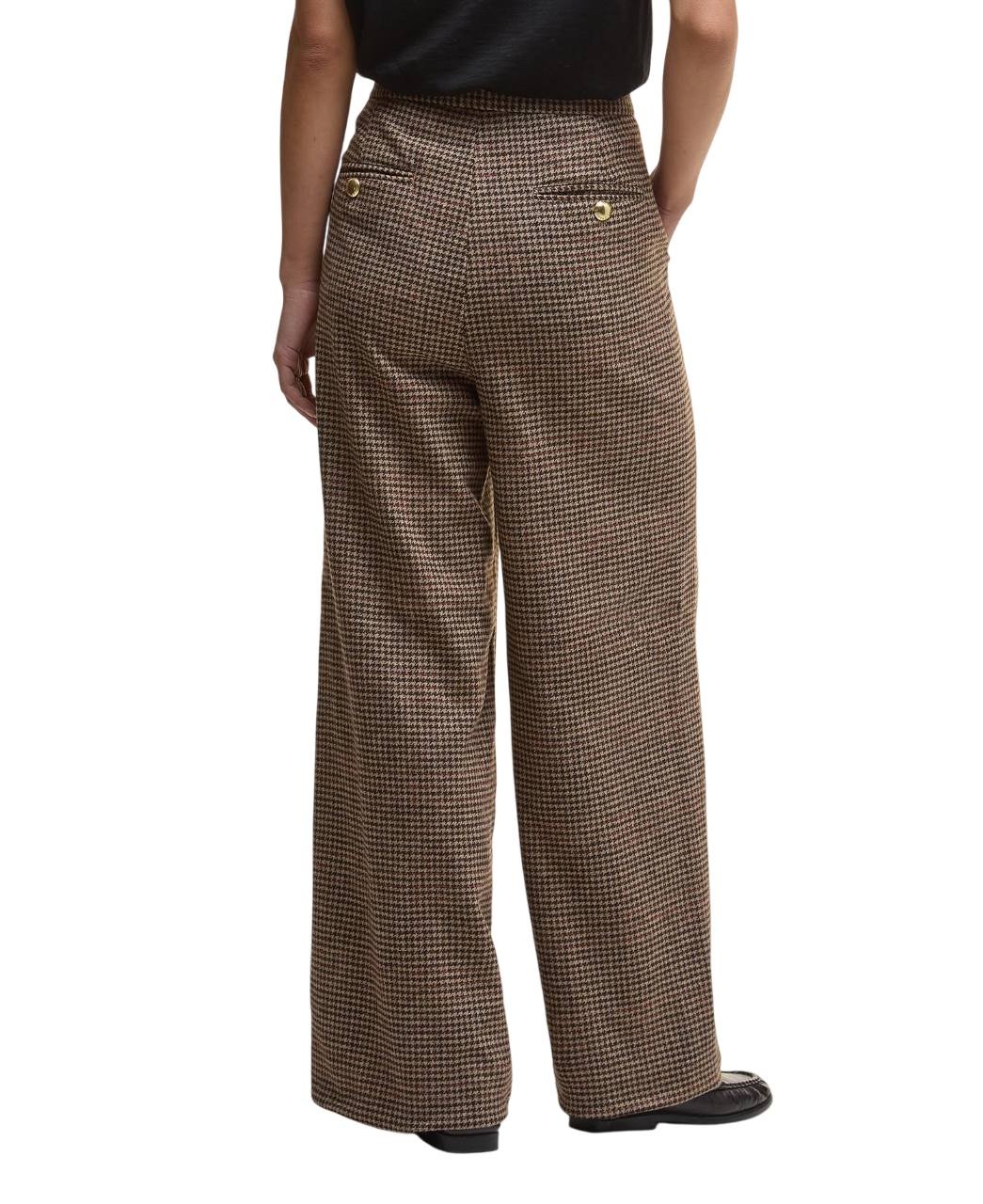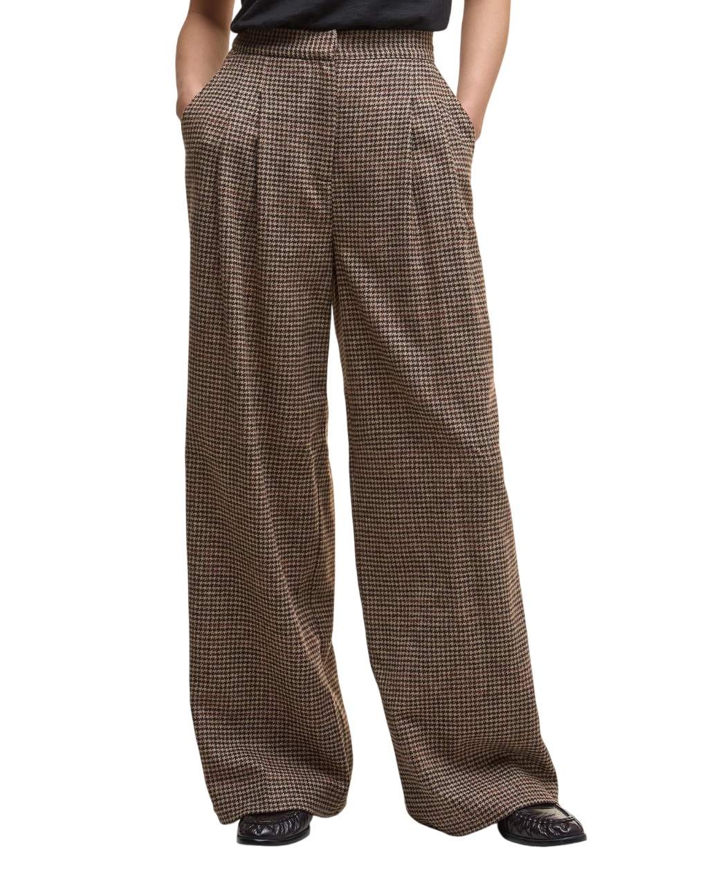De combinatie van hoogwaardige merino wol, houndstooth tweed heritage design, praktische zakken en een wide-leg silhouet maakt de Sophia trousers een veelzijdige en elegante keuze.