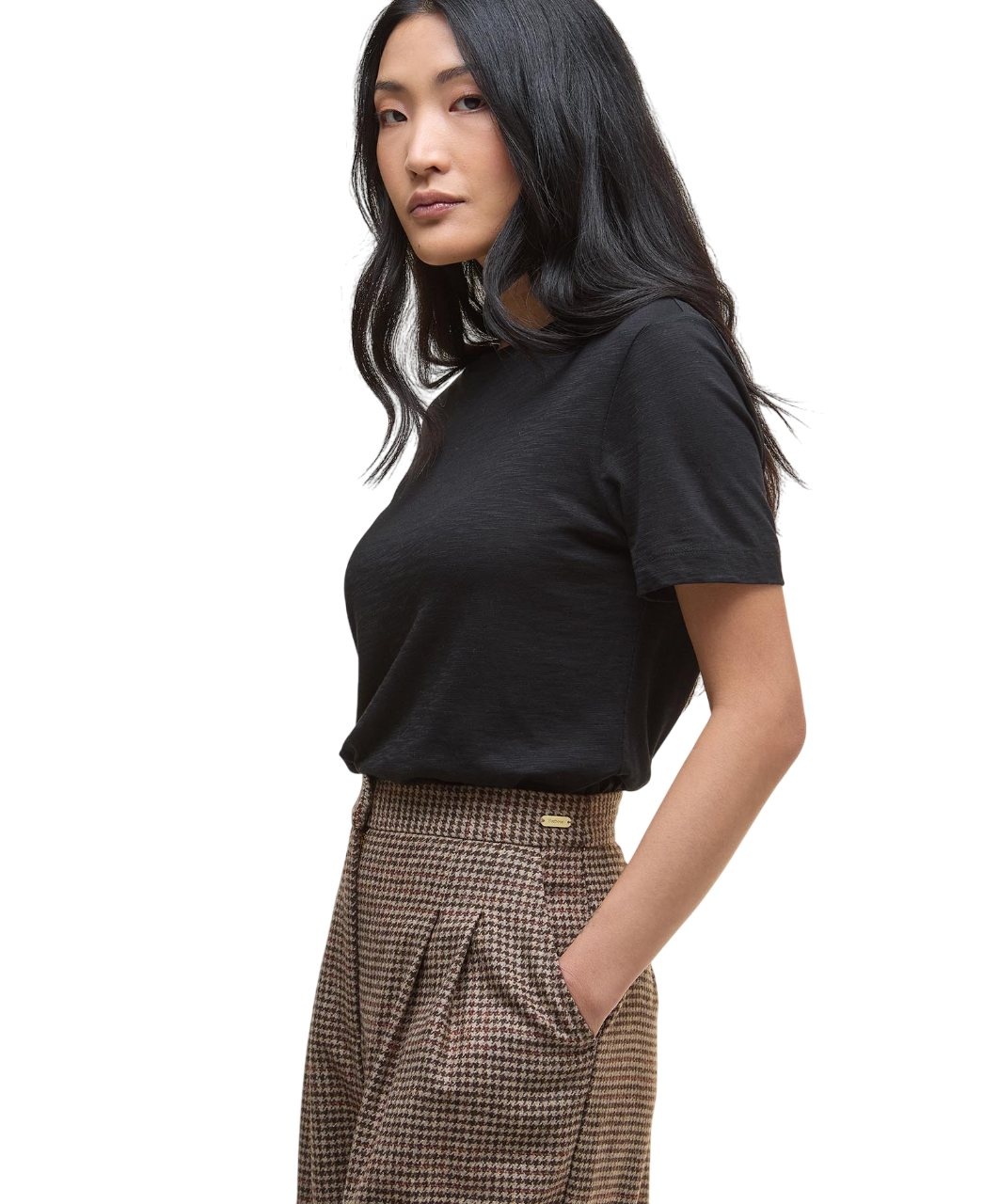 Barbour Sophia Wool Tailored Trousers Multi Check: stijlvolle damesbroek van zachte merino wol met hoge taille, wide-leg pasvorm en praktische zakken. Perfect voor werk, stad of diner. Bestel nu!