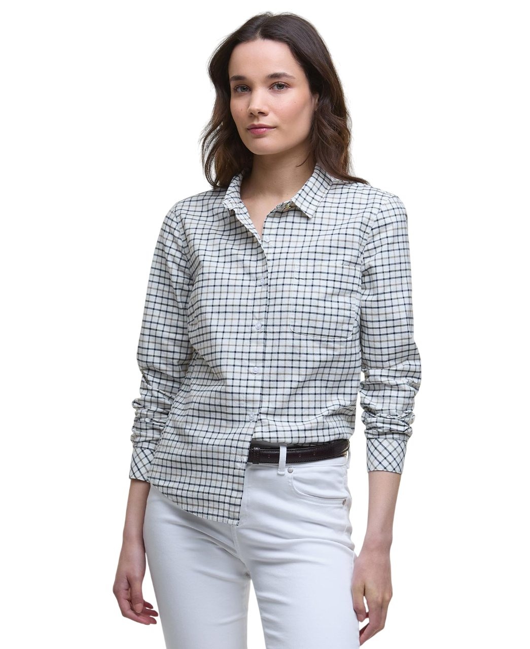Het Barbour Woodside Tailored Long-Sleeved Shirt Navy Check is een stijlvol dames shirt dat moeiteloos comfort en klasse combineert. Het navy check patroon geeft een klassieke uitstraling, terwijl de getailleerde snit zorgt voor een vrouwelijke pasvorm die flatterend werkt. Perfect voor zowel casual als zakelijke gelegenheden.