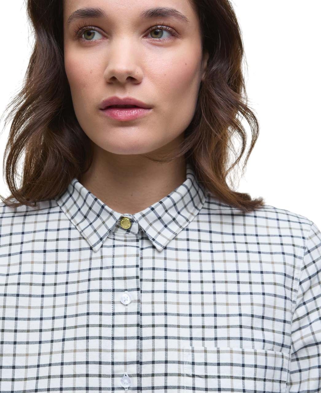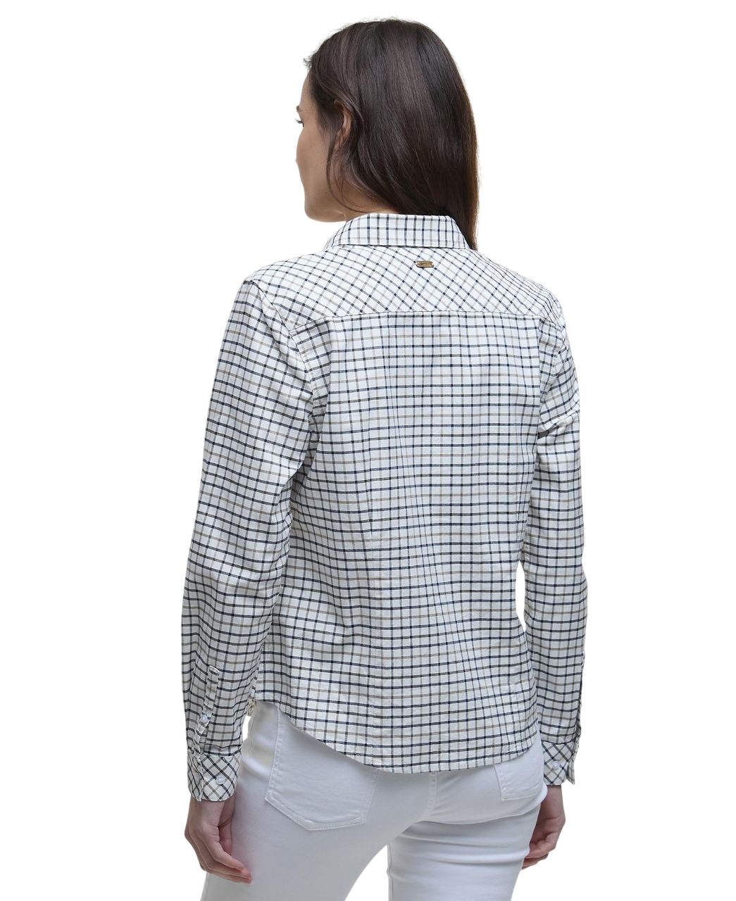 Barbour Woodside Tailored Long-Sleeved Shirt Navy Check – dames shirt van katoenstretch met flatterende pasvorm, ruitpatroon en luxe details zoals parelmoer knopen en Barbour ID-bar. Perfect voor casual en kantoor. Bestel vandaag nog!
