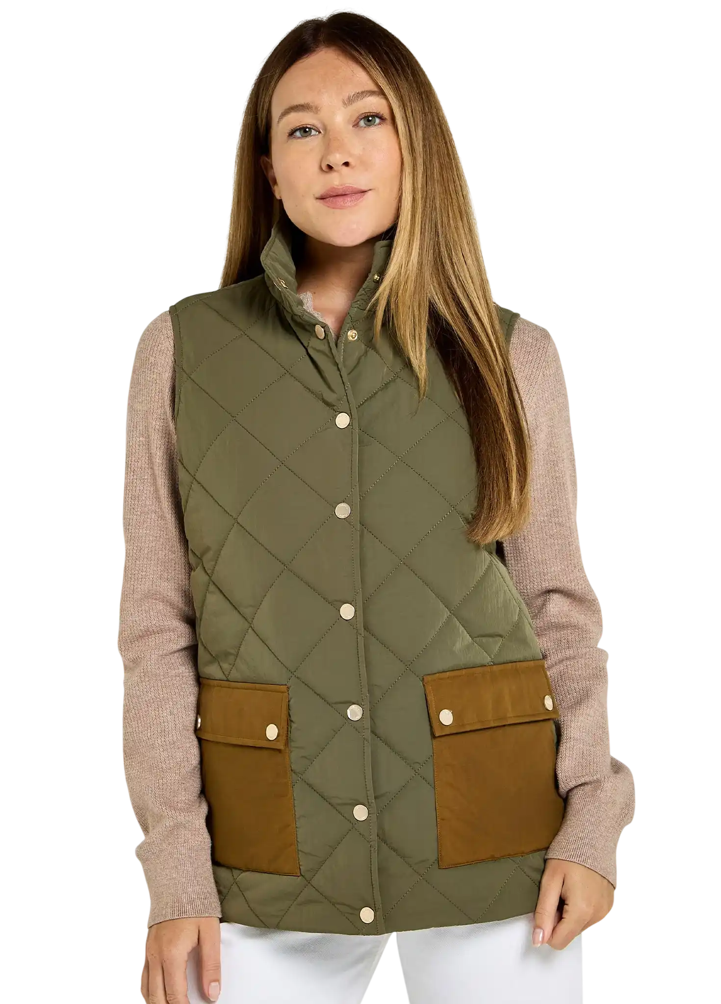 Dubarry Clashmore Bodywarmer Kelp is een lichtgewicht dames gilet met luxe waxkatoen details. Stijlvol, warm en perfect als veelzijdige tussenlaag in elk seizoen.
