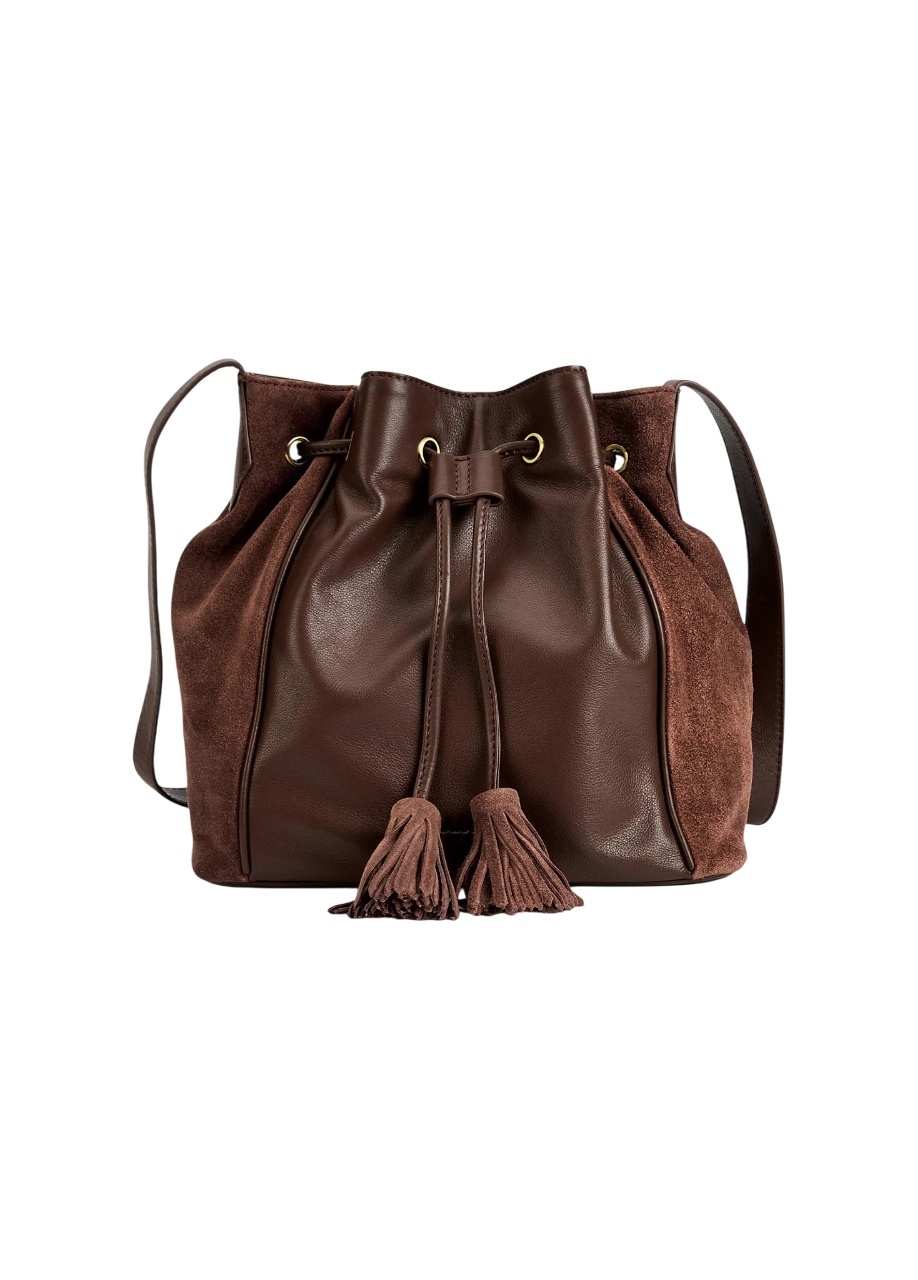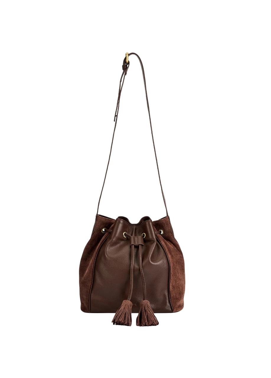 De Doonbeg bucket bag voegt moeiteloze elegantie toe aan elke outfit. Gemaakt van boterzacht volnerfleer in combinatie met luxe suède zijpanelen, straalt deze tas pure klasse uit. De stijlvolle trekkoordsluiting met sierlijke kwastjes en de verstelbare crossbody-riem maken haar even praktisch als charmant.