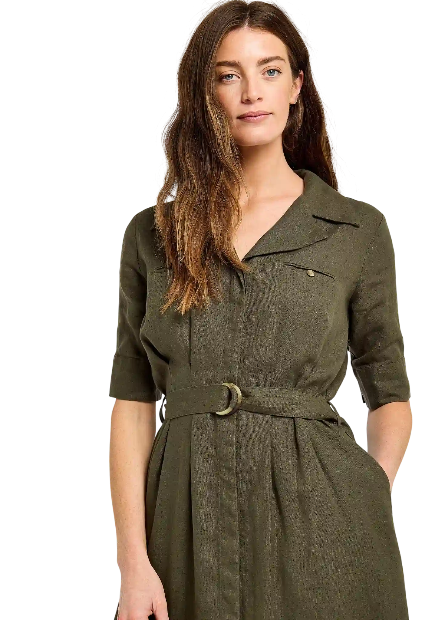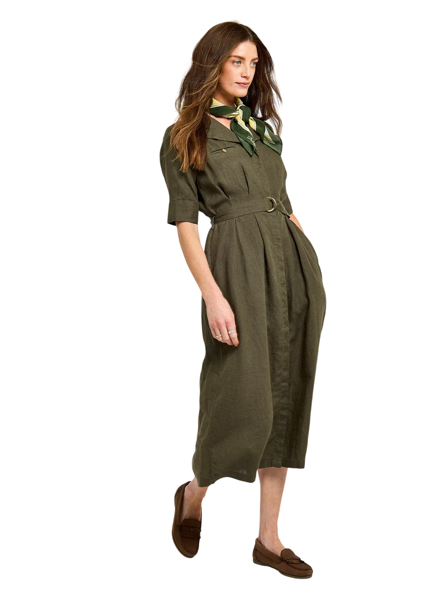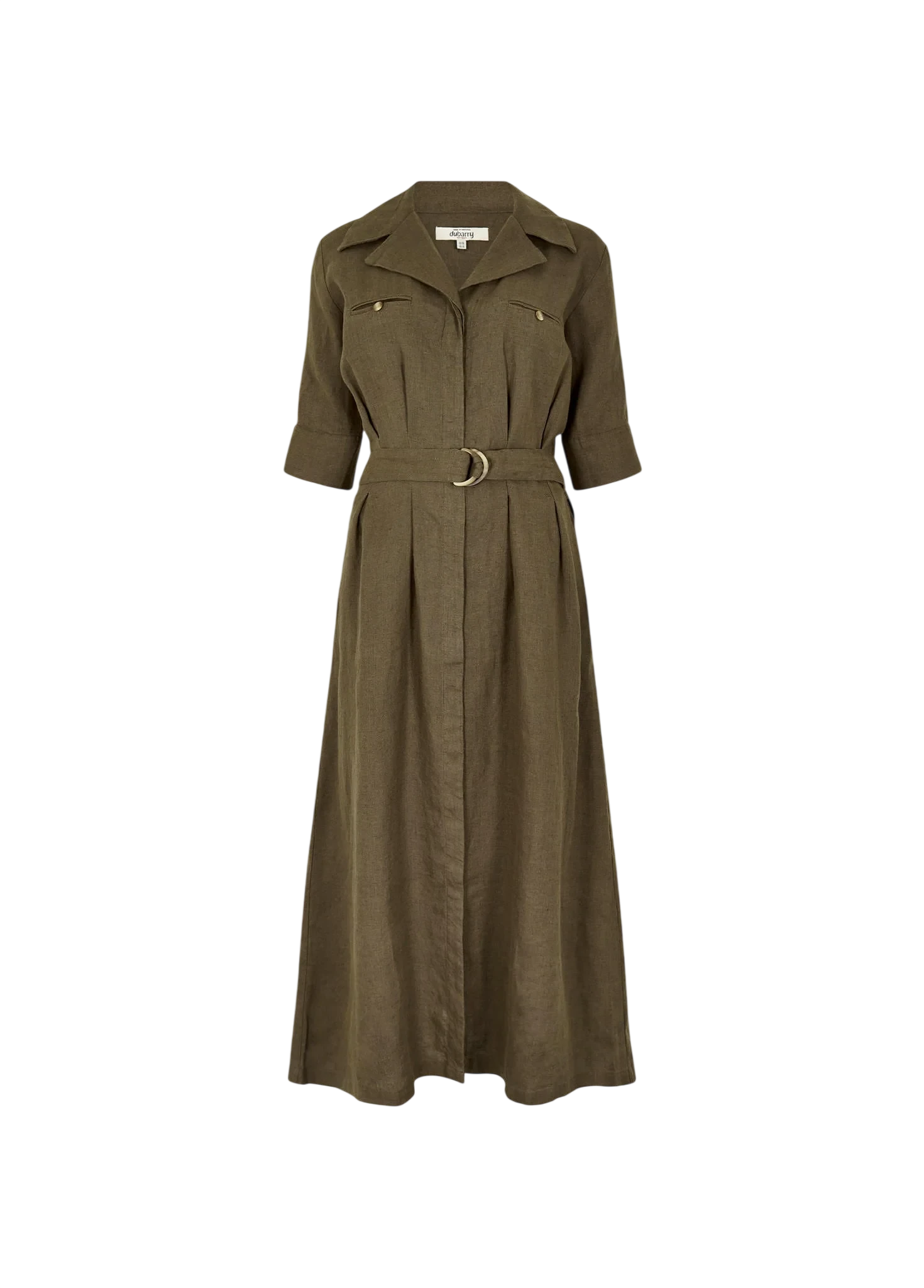 Dubarry Gaynor linnen jurk Khaki voor dames. Gemaakt van 100% Europees linnen voor ademend en koel comfort. Elegant, veelzijdig en perfect voor warme zomerdagen en casual chic outfits.
