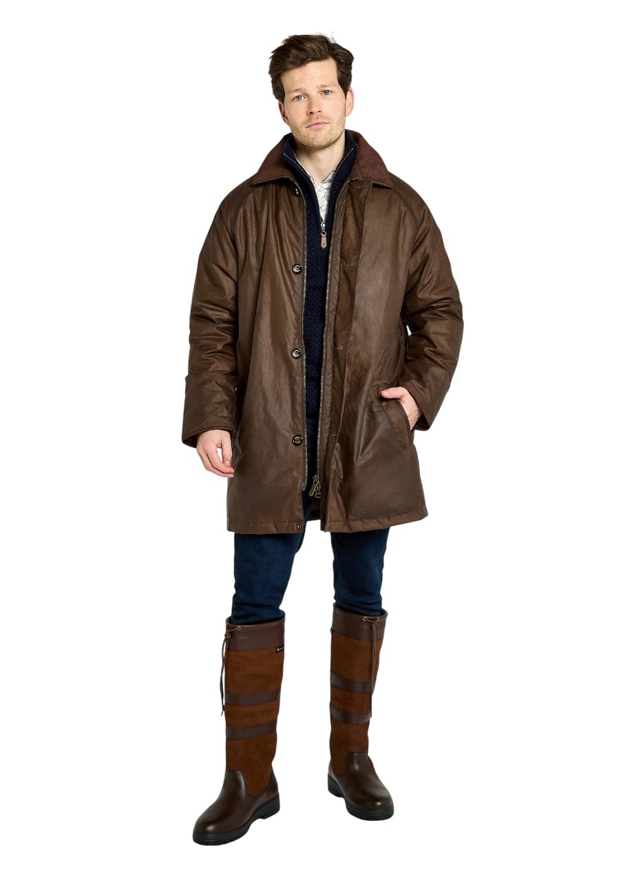 Dubarry Prospect Heren Waxkatoenen Jas – Café – Waterafstotende waxjas met warme PrimaLoft®-voering, stormboorden en handwarmzakken. Tijdloos, comfortabel en ideaal voor stad en buiten. Ontdek hem nu!