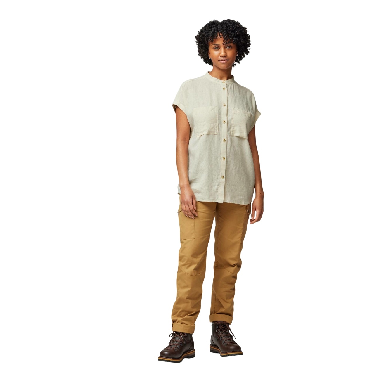 Fjällräven Övik Hemp Shirt SS W Chalk White – Licht dames shirt met korte mouwen van hennep en lyocell. Zacht, koel en sneldrogend. Ideaal voor reizen, wandelen of warme dagen in de stad. Ontdek het nu!
