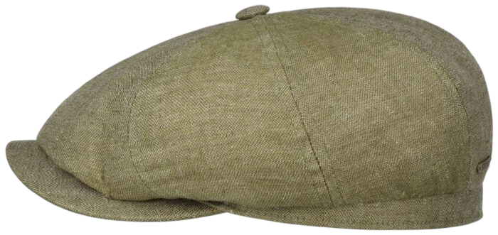 Een luxe heren flat cap (Hatteras model) van 100% linnen met klassieke vorm en moderne afwerking.